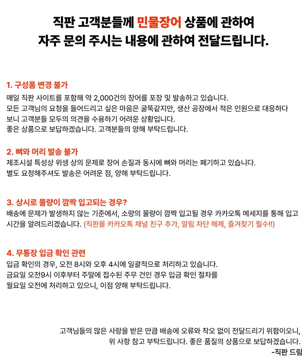 · 배송비 : 4,000원(2개 마다 기본배송비 반복 부과)